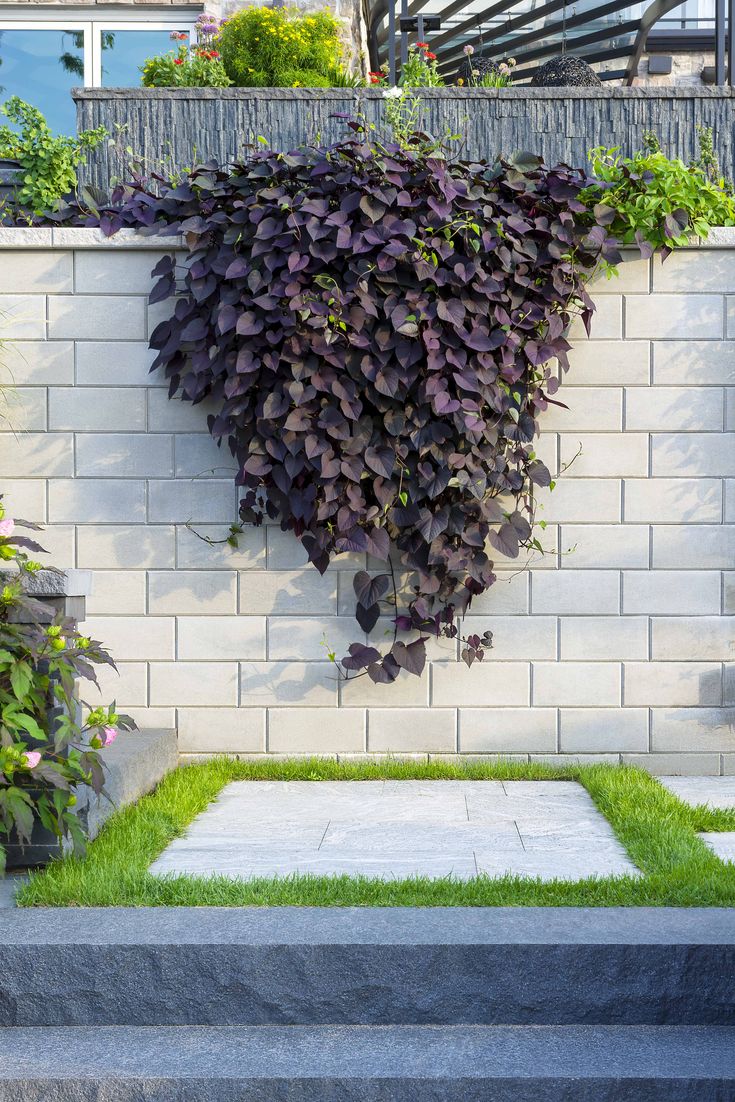 Dinding tembok tanpa besi dapat dikombinasikan dengan tumbuhan untuk menciptakan kesan alami dan segar. Selain itu, tumbuhan merambat atau taman vertikal ini membuat penampilan rumah menjadi lebih indah.