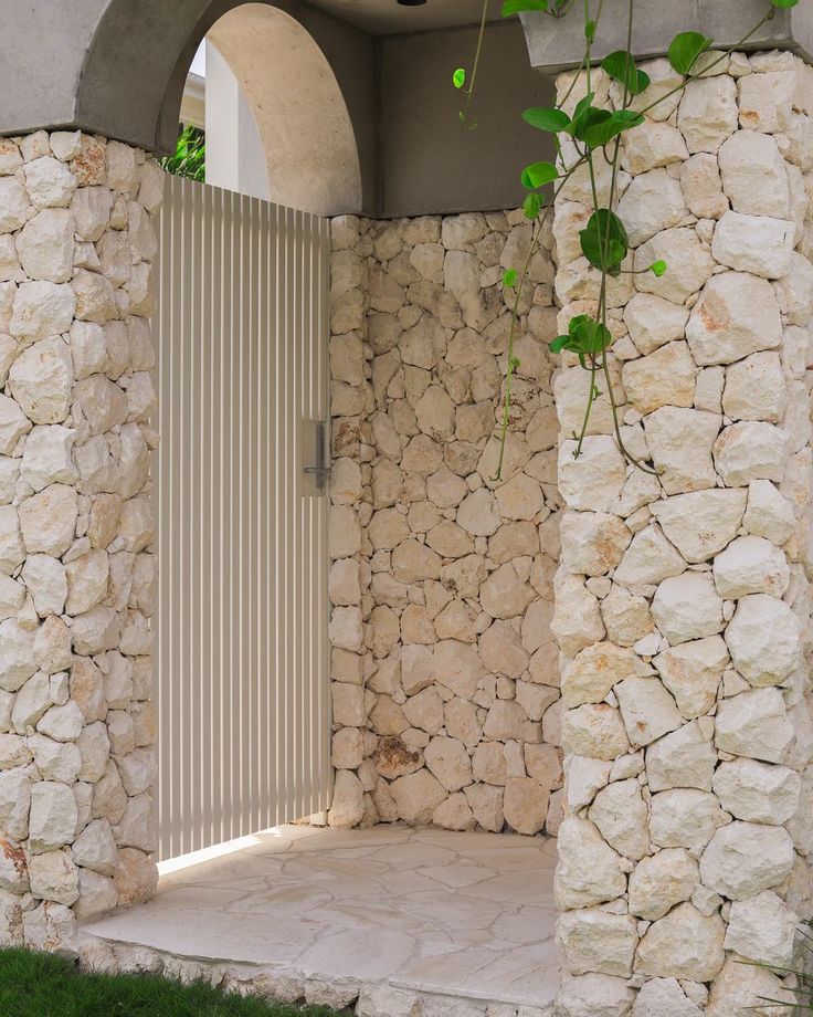 Dinding tembok yang dihiasi dengan sentuhan batu alami menciptakan kesan kokoh namun tetap seimbang dengan suasana sekitarnya. Selain itu, tekstur alaminya menghadirkan variasi visual yang menarik serta memperkuat ciri khas dari dinding rumah tersebut.