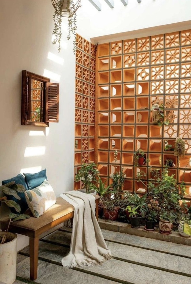 Struktur roster tetap menjadi bagian yang disukai dalam desain rumah modern. Bukan hanya sebagai pagar atau pembatas, kehadirannya di teras hingga bagian depan bangunan memberikan ciri khas yang jelas. Untuk tampilan yang lebih halus, roster umumnya dilapisi dengan cat yang memperkuat tekstur dan warnanya.
